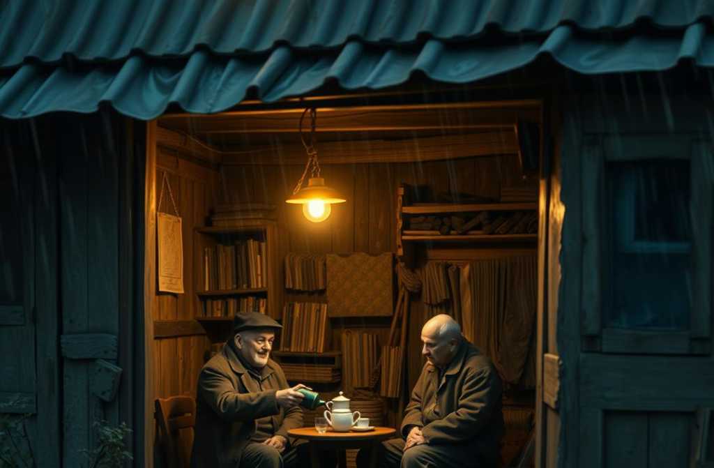 Jis apsigyveno pas tetą Verą – tą pačią, kuri anksčiau kepdavo jam kopūstų pyragėlius, tepdavo jodu sudaužytas alkūnes ir pasakodavo, kaip jos vyras visą gyvenimą dirbo lentpjūvėje, kol širdis nesustojo. Jos namai nepasikeitė: nulupusios sienos, senas pletas ant sofos, savadarys ant televizoriaus. Teta Vera, susiraukusi, dvokianti žolelėmis ir pigiu muilu, pažvelgė į jį ir sukrėtė galvą.