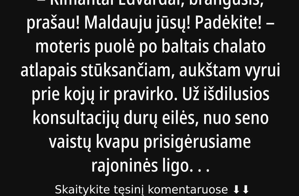 Rimantai Edvardai, brangusis, prašau! Maldauju jūsų! Padėkite! moteris puolė po baltais chalato atlapais stūksančiam, aukštam vyrui prie kojų ir pravirko.