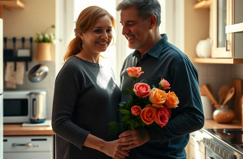 Vakare Saulius grįžo su didžiule rožių puokšte.