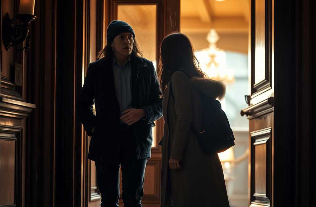 Tą naktį, kai Lėja užmigo aukšte, Julianas stovėjo balkone, žiūrėdams į audringą dangų. Emilija prisijungė, apsivilkusi tarnaitės chalatu.