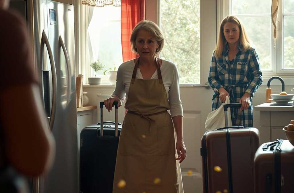 Ant slenkstio stovėjo Dalia su vyru Algirdu, apsikabinus rankoves ir lagaminais. Pusbrolė atrodė susimaltinus ir pavargus, o jos vyras niūriai raukė kaktą.