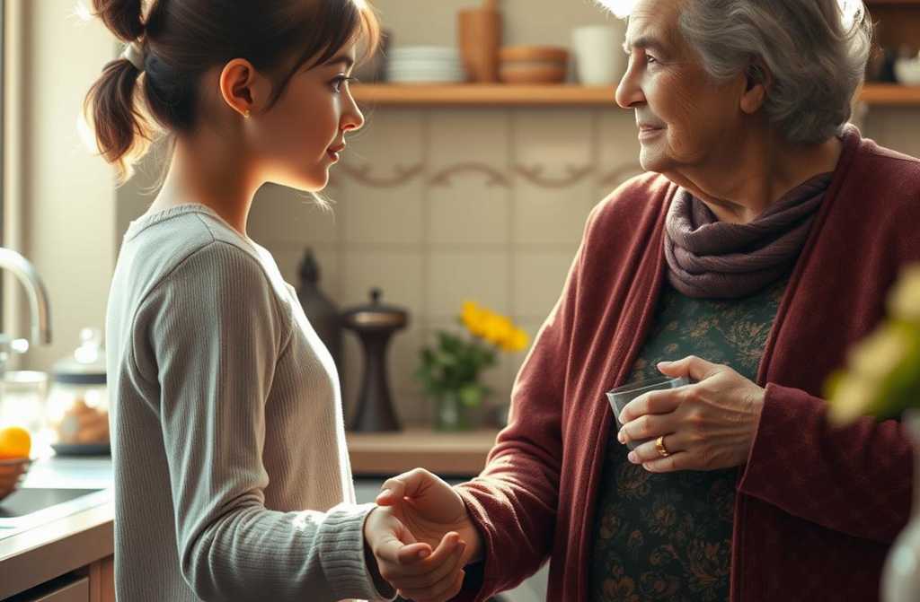 Klausyk, Didžiulienė palinko į priekį, pabandyk pabūti su mama, o aš pasidomėsiu tavo močiute. Sutarta?