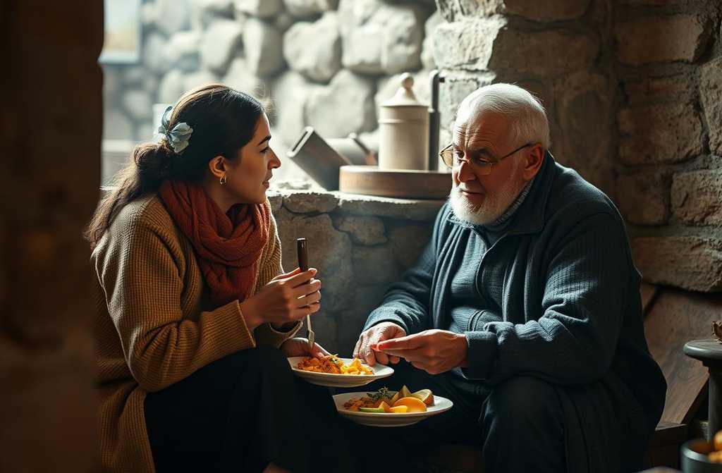 Pamatė išsiblaškusį senį kieme, sustojo, išsigandusi. Nežinomas vyras laužė mažą lauželę ir šildė vandenį purvine puodeliu.