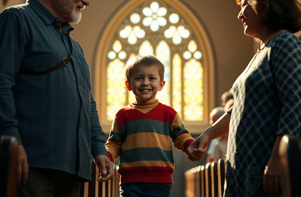 Prie šono atsistojo mažas liesas berniukas su žvakele rankoje, nesuprasdamas, ką daryti. Prie jo priėjo pagyvenusi moteris: