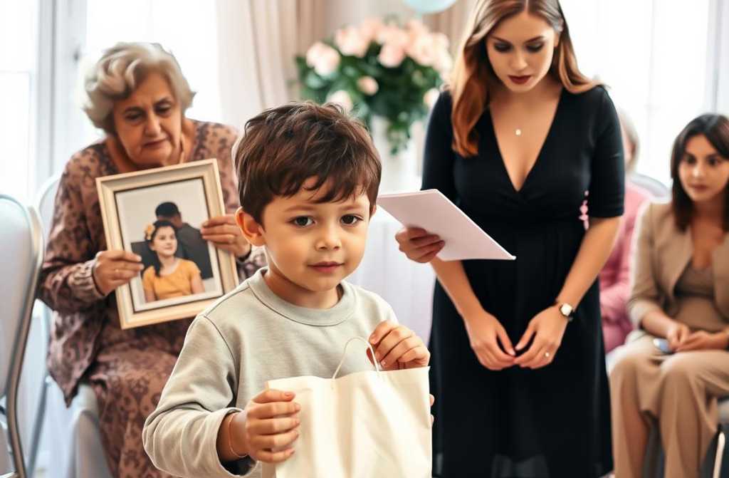 Jis tyliai sėdėjo šalia manęs, mažos kojos siūbuoja nuo kėdės, spaustąs mažą baltą dovanos maišelį su Močiutei. Prieš tai, kol aš spėjau jį sustabdyti, jis atsistojo ir nuėjo pas mano mamą, ramus ir susitelkęs.
