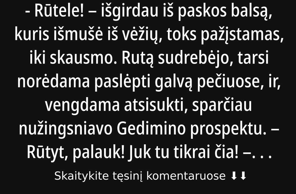– Rūtele! išgirdau iš paskos balsą, kuris išmušė iš vėžių, toks pažįstamas, iki skausmo.
