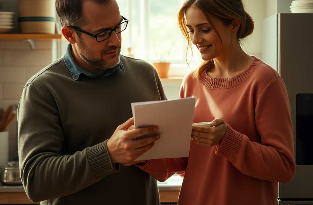 Žmona išeina iš kambario, pamato stalą ir jo veidą.