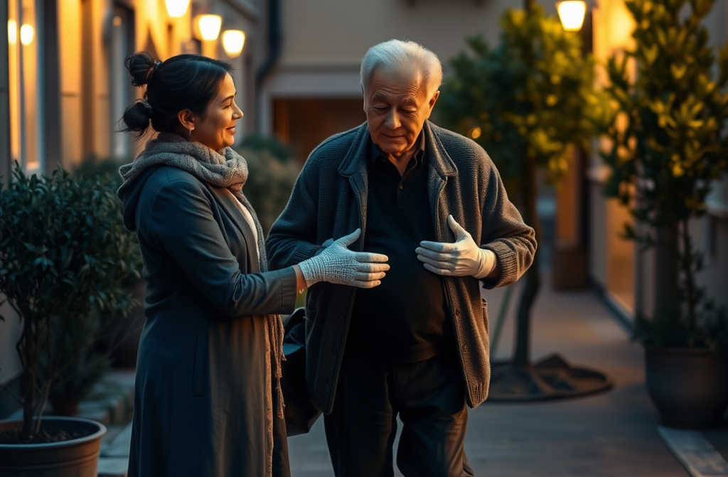 O istorija jų tokia. Senelis per karą buvo patekęs vokiečių nelaisvėn. Kad neišduotų aukštų pareigų, pats susižalojo liežuvį. Higienos sąlygų nebuvo, tad kai išlipo iš nelaisvės, uždegimas tapo grėsmingas ir teko pašalinti pusę liežuvio. Todėl dabar jis vos kalba, tik girdi murmesį. Neseniai jų kiemo vaikų žaidimų aikštelėje paaugliai įprato vakarais gerti alų ir bet kur mėtyti sudaužytas butelių šukes. Jie rašė skundų policijai, bet niekas nepadeda. Vaikai semia nešvarumus, o kartą ir dukra, Eglutė, susipjaustė koją. Nuo tada senelis pradėjo po vakarienių vaikščioti po kiemą, rinkti šukes, kad vaikai nenusipjautų rankų ar kojų. Jis jau senas, kojos sunkiai laiko. Stengėsi jie jį perkalbėti, slėpė net namų raktus, o jis vis išeidavo. Kartą jau buvo taip nugriuvo ir gulėjo ant šaltos žemės valandomis, niekas nepadėjo, kol jie, tik grįžę iš darbo, jo neieškojo. Šį kartą spėjo laiku. Ačiū tau.