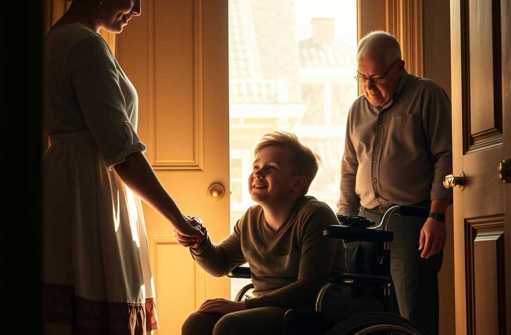 Kambario centre sėdėjo jo sūnus tylausis vaikinas, pritvirtintas prie neįveikto vežimėlio bet šalia jo nebuvo vienas.