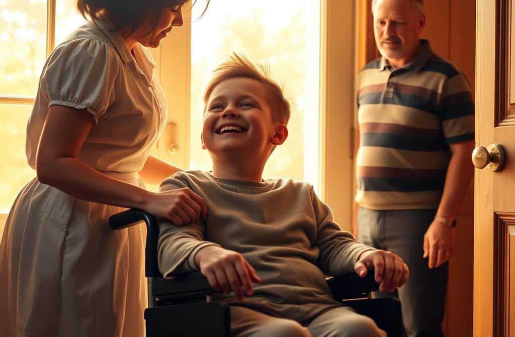 Kambario centre sėdėjo mano sūnus – tyli, nejudanti sėdynė neįgalų vežimėlis – bet jis nebuvo vienas.
