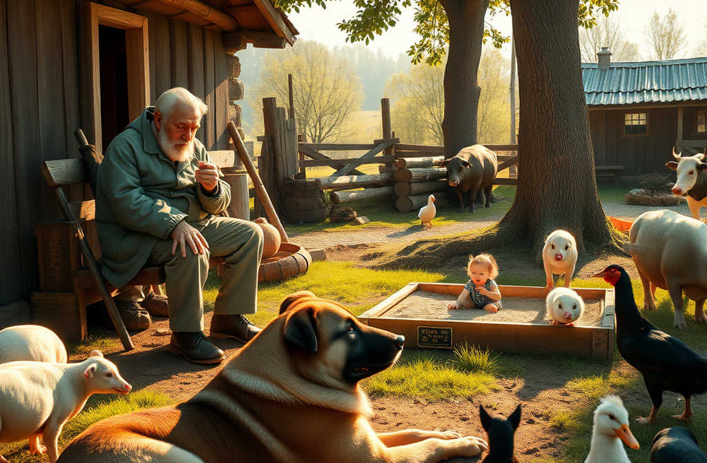 Užsiėmė ūkio darbais. O šeimos ūkis buvo ne mažas: trys paršeliai, kiaulė su dešimt jauniklių, karvė Mėlynė, dešimt vištų, šešios antys su ančiukais ir katinas Plūkas