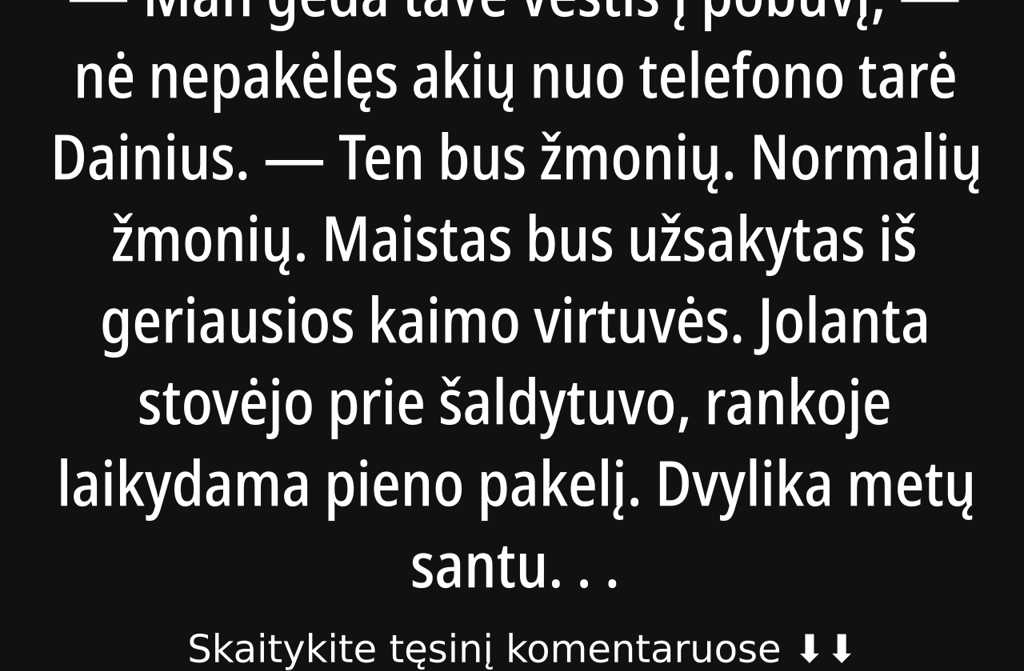 Jolanta stovėjo prie šaldytuvo, rankoje laikydama pieno pakelį. Dvylika metų santuokos, du vaikai. Ir štai gėda.