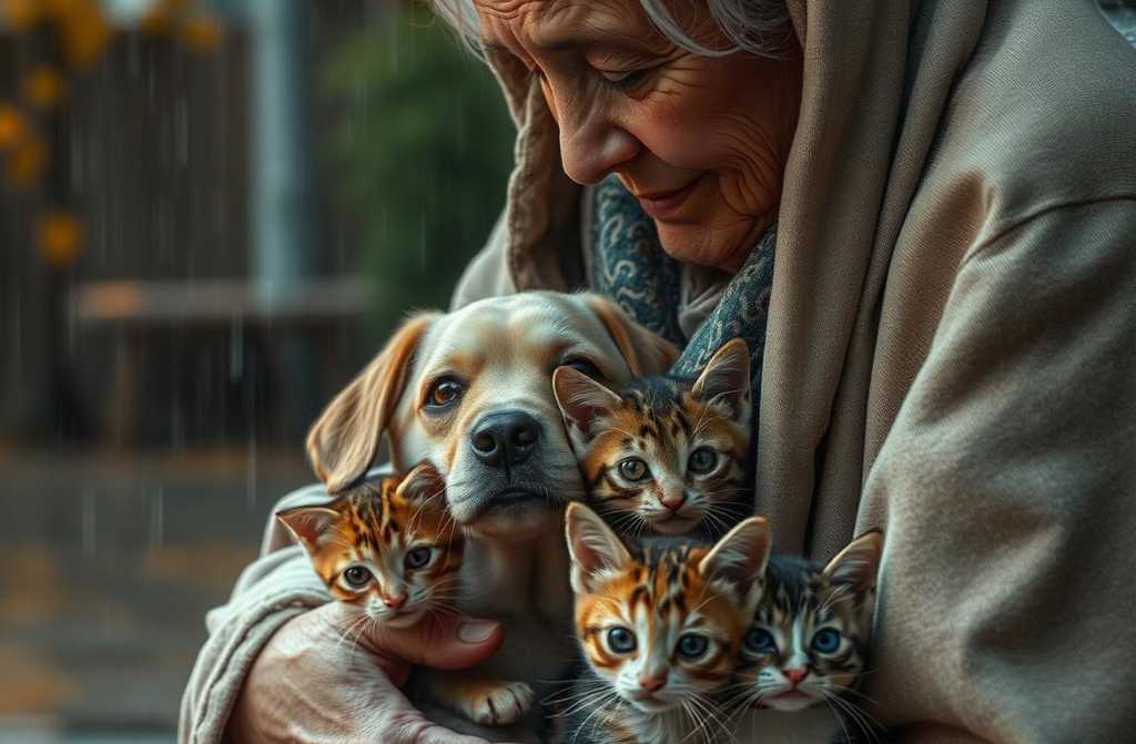 Atsirado rudens lietūs. Šalti ir niūrūs. Katė kūnu bandė apsaugoti mažuosius, o Corgis be abejonės užsiklojo ant jų, kad juos apšiltų.