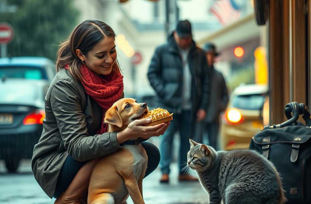 Kitą dieną ji atnešė jiems maisto. Giliai širdyje tikėjosi, kad jie bus toje pačioje vietoje. Ir jie buvo. Katė džiaugsmingai pamiaukė, o šuniukas mostelėjo uodega. Nuo to laiko ji kiekvieną rytą atnešdavo pusryčius, o vakare palikdavo kažką skanaus.