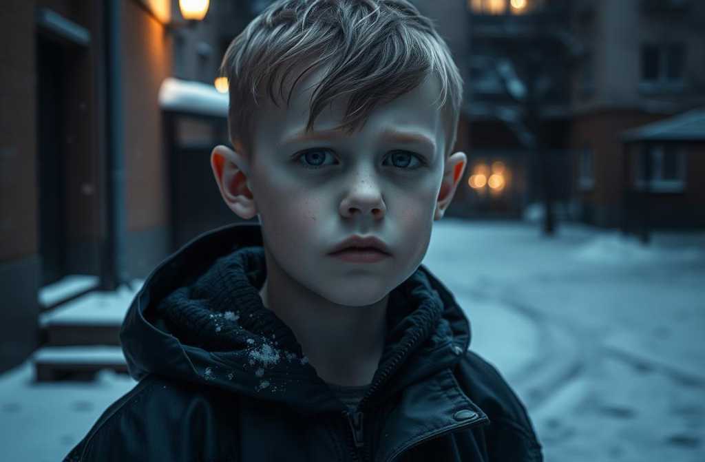 Berniukas su didelėm pastangom pakėlė akis. Jose šlavė tyli, begalinė skausmas, baimė ir bejėgiškumas. Jai užspringo kvapas prieš ją stovėjo sužeistas gyvūnas, ieškantis apsaugos, nesugebantis paaiškinti savo skausmo.
