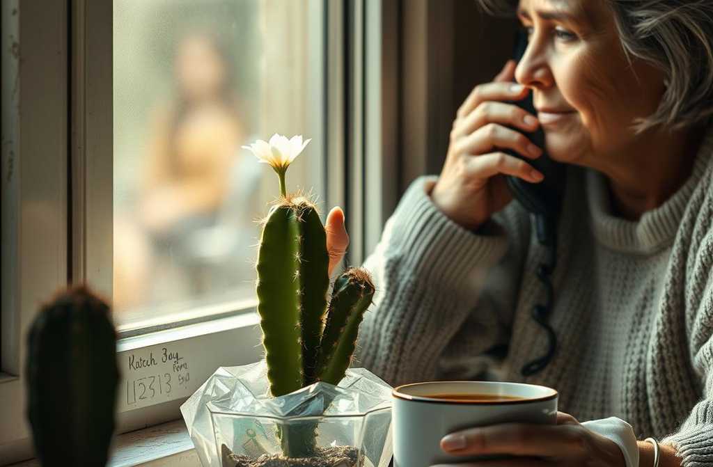 W kuchni, popijając mocną kawę, wpatrywałam się w biały kwiat kaktusa delikatny, jak ozdoba na choince. Ledwo powstrzymywałam uśmiech. *Nawet zapomniana roślina potrafi zaskoczyć.*