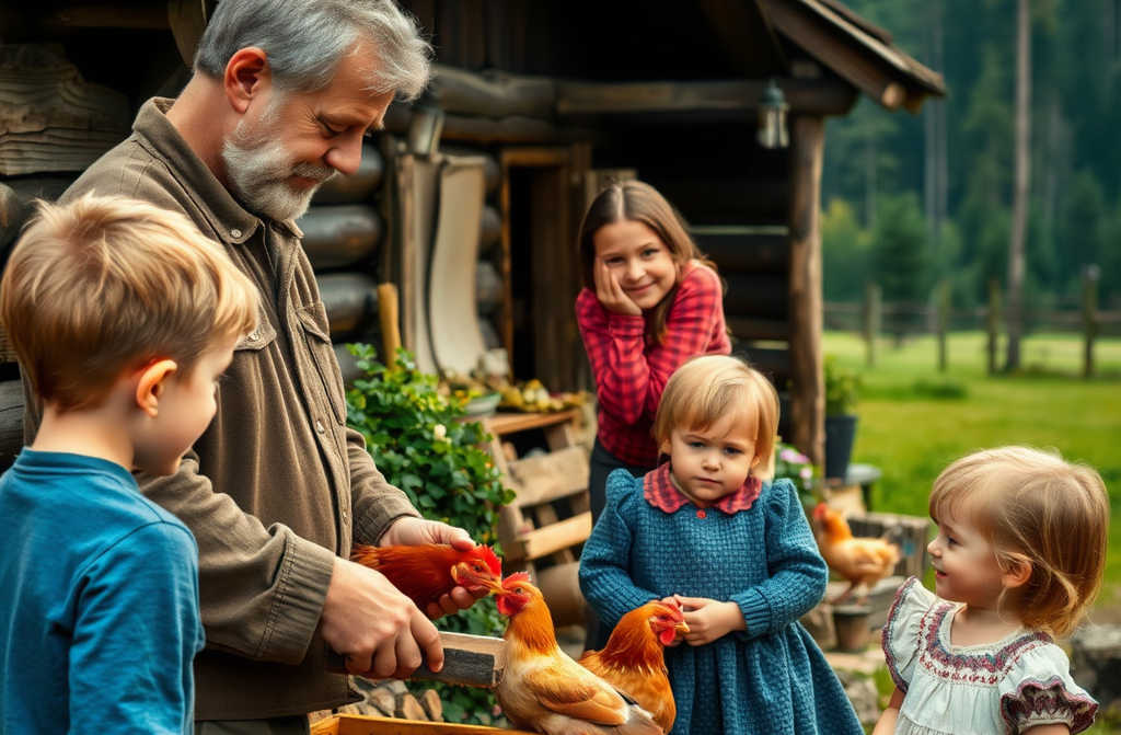 Maitė tyliai atsisėdo laiptuose ir žiūrėjo, kaip Andrius pila vandenį vištoms. Ir pirmą kartą pagalvojo: Jis nenori pakeisti tėčio. Jis nori būti šalia.