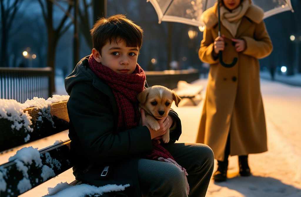 Sniegas krisdavo storais gabalėliais, tarsi balti žvaigždės krenta ant žemės. „Gal šiek tiek pasivaikščioju“, – šnabždėjo jis sau. Iškeliavęs iš automobilio, šaltas oras smogė veidą kaip mažos adatos, o jo itališkos batelės įsiskverbė į minkštą sniegą. Tylėjimas aplinkui buvo beveik visiškas, tik kartais girdėtų jo žingsnių šlamesys. Staiga išgirdė silpną, beveik nepastebimą skambesį – kaip vėjas, bet šiek tiek kitokį. Jis sustojo, klausėsi, ir garsas sustiprėjo, sklindantis iš žaidimų aikštelės.