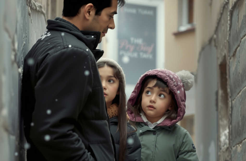 Mergaitė purto galvą, laikydama kūdikį dar stipriau, berniukas aimanuoja iš nuovargio ir šalčio, mažos rankytės slepiasi sesės striukės raukšlėse, lyg ji vienintelė užtvara prieš pasaulį.
