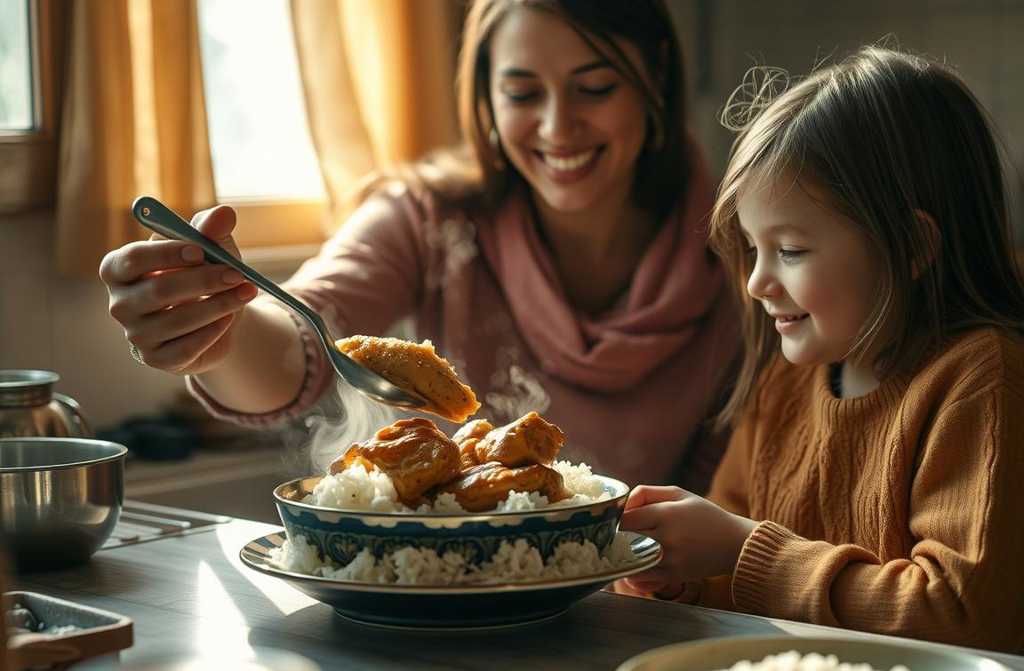 Vištieną su ryžiais, jos balsas šnibžda, ir šaltibarščius.