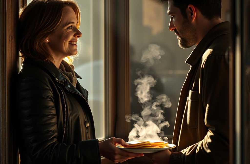 Labas rytas pasakė, iškišdama piniginę. Leiskite man sumokėti jūsų pusryčius.