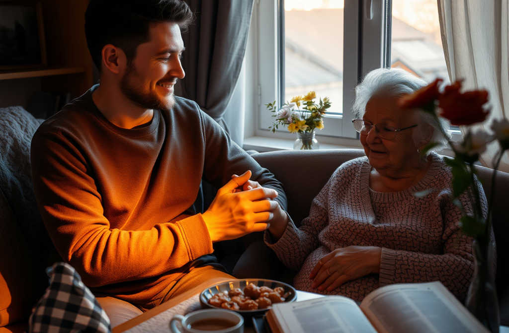 Pirmos dienos buvo sunkios motina lėtai įsijaukindavo į naują aplinką. Ji naršydavo po namą atsargiai, tarsi bijodama kažko sutrikdyti. Valandų valandas praleisdavo tylėdama savo kambaryje, skaitydama maldas, beveik neišlinddama. Tačiau po dviejų savaičių pastebėjau pokytį. Pamažu ji grįžo prie gyvenimo. Jos akys vėl užsidegdavo šviesiai, kai grįždavau iš darbo. Ji laukdavo prie durų, o aš jos žvilgsnyje mačiau, kaip ji džiaugėsi mane matydama.