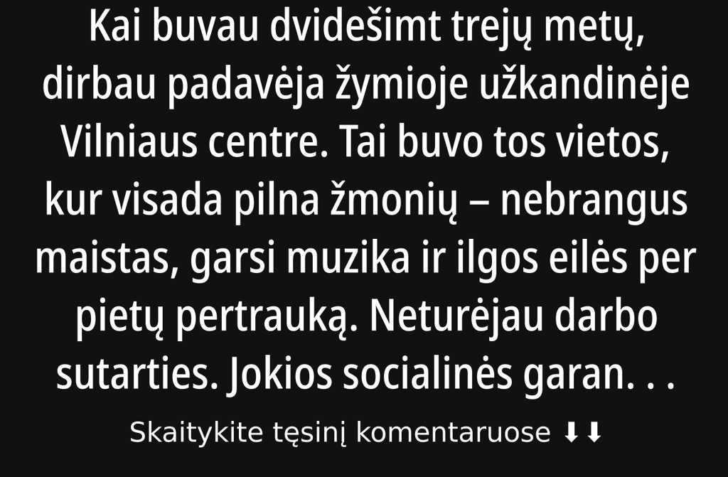 Kai man buvo 23 metai, dirbau padavėja populiariame restorane Vilniaus centre – tai buvo vieta su pi…