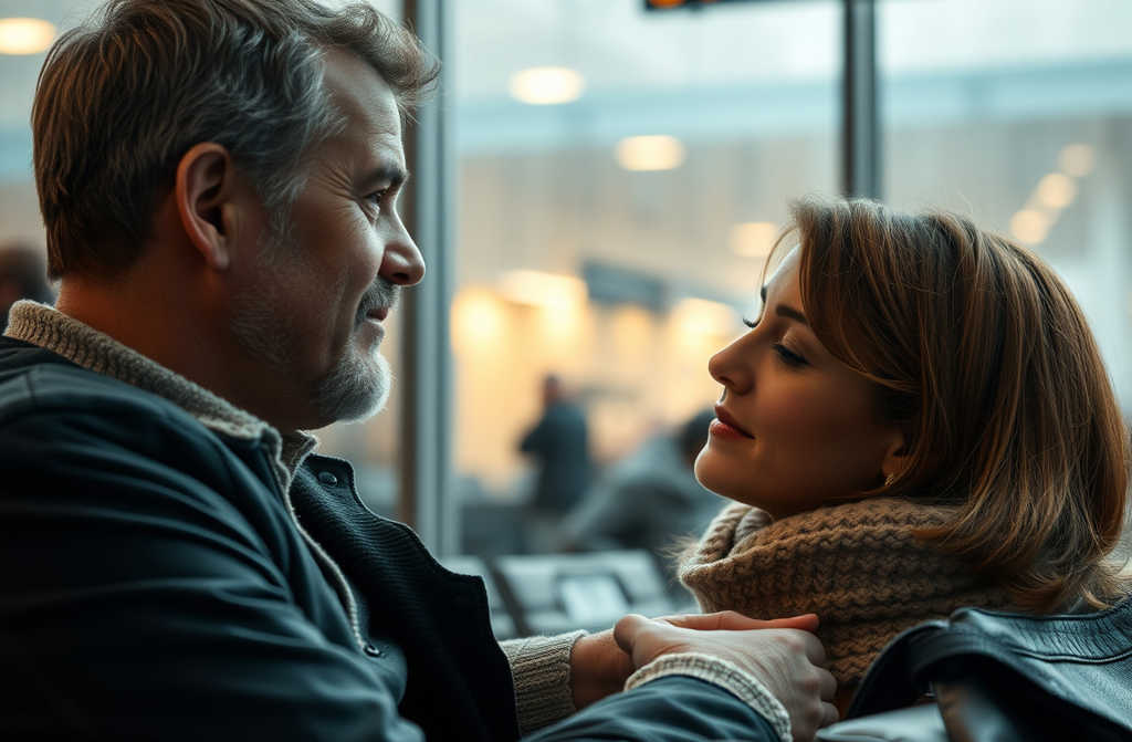 Oro uosto laukiamajame jis prisėdo šalia, kol vaikai spoksojo į lėktuvus pro didelį langą.