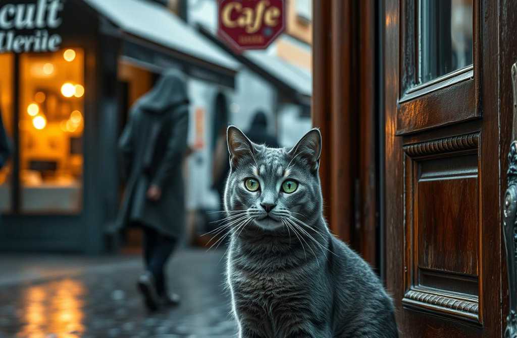 Mažoje kavinėlėje ant Vilniaus gatvės, paslėptoje tarp senų raudonų namų ir siaurų kiemelių, vos telpė pora stalų. Išorėje jos vitrina buvo kukli: pora croissantų stiklinėje spintelėje, keli knygų lentynos, kurias kadaise atnešė seni draugai, ir senas gramofonas, iš kurio tylomis skambėjo džiazas liūdnas, žemas, kuris sukurdavo ypatingą atmosferą. Bet daugiausia dėmesio traukė ne šviežiai maltos kavos kvapas ar pyragaičiai, o pilkas katinas, kuris visuomet sėdėjo priešakyje, žvelgdamas į duris.