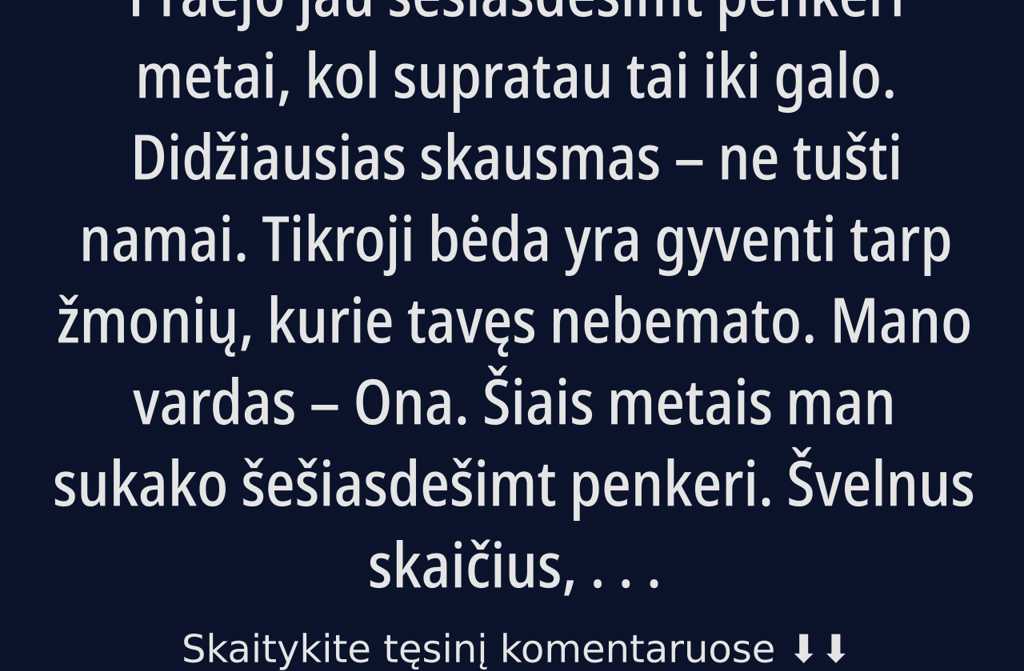 Mano vardas Ona. Šiais metais man sukako šešiasdešimt penkeri.