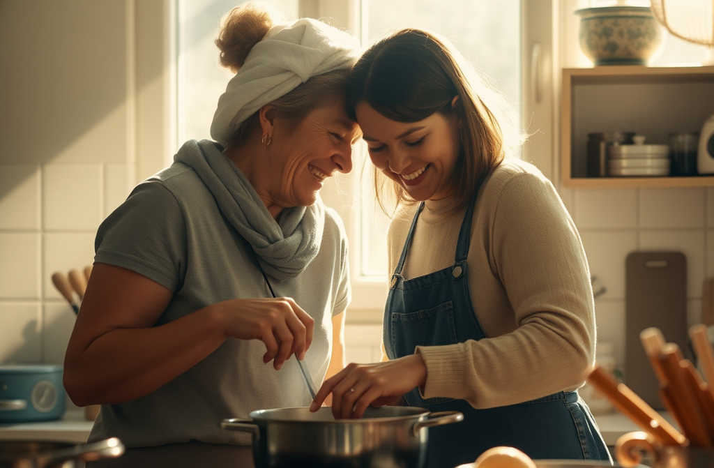 Šiandien ji su mano mama kartu verda sriubą, kvatojasi, žaidžia su vaikais.