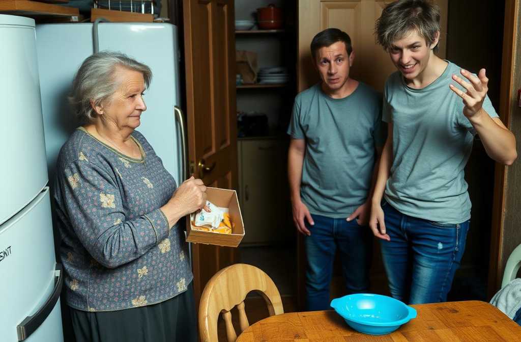 Galina Mykolai, jūs vėl suvalgėte mano varškėčius?! Alina stovi virtuvėje su tuščiu pakuotu.