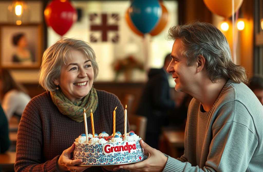 Ji kikeno, akys žėrėjo nervingu švytėjimu, kuris lydėjo ją visą vakarienę. Dabar viskas atsiskleidė. Taip! Norėjau nustebinti, tarė ji, artindamasi su torta. Ji buvo balta, su mėlyna ir rožine glajumi, o viršuje didelėmis raidėmis: Sveikinimai, seneli!
