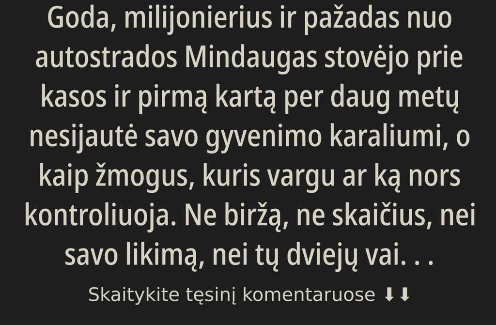 Dovydas stovėjo prie kasos Iki parduotuvėje Vilniaus senamiestyje ir, ko gero, pirmą kartą per daugelį metų jautėsi tarsi nebegalintis valdyti situacijos. Ne biržos, ne skaičių, ne likimo nei savo, nei šių dviejų vaikų.