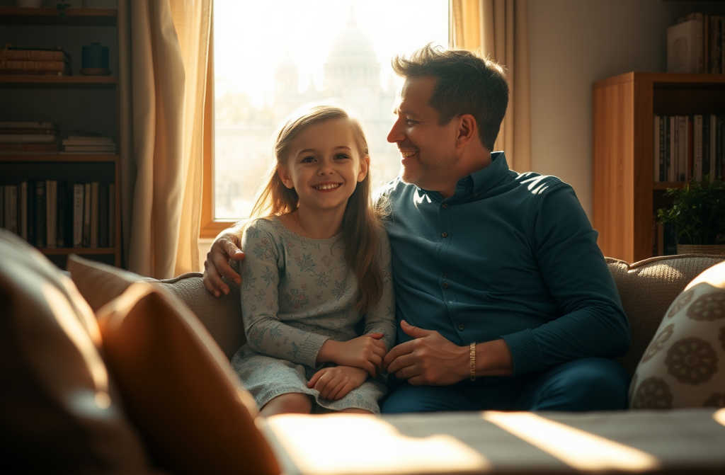 Po kelių minučių Linas grįžo, vedinas dukra už rankos. Tai buvo dešimtmetė mergaitė, neseniai pradėjusi lankyti ketvirtą klasę. Ji stipriai suspaudė tėčio ranką ir šypsojosi ištisai.