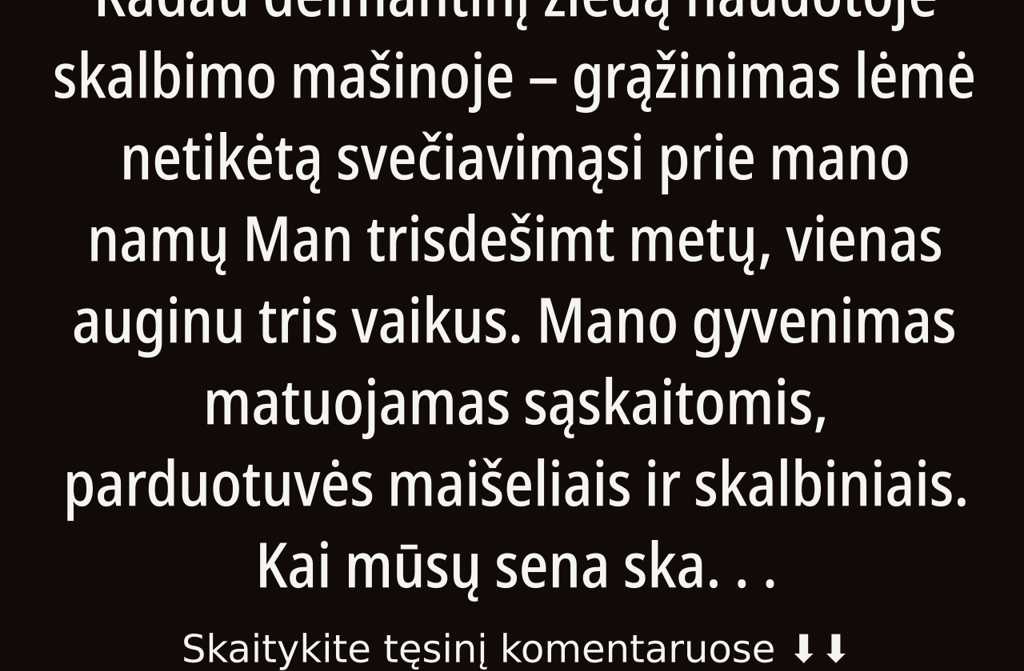 Radau deimantinį žiedą naudotoje skalbimo mašinoje grąžinimas lėmė netikėtą svečiavimąsi prie mano namų