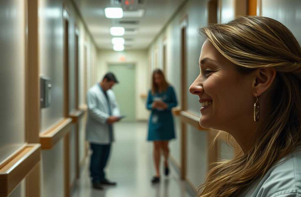 Pasiruošęs, jis išėjo į koridorių. Prieš jį ėjo ligoninėje pacientė.