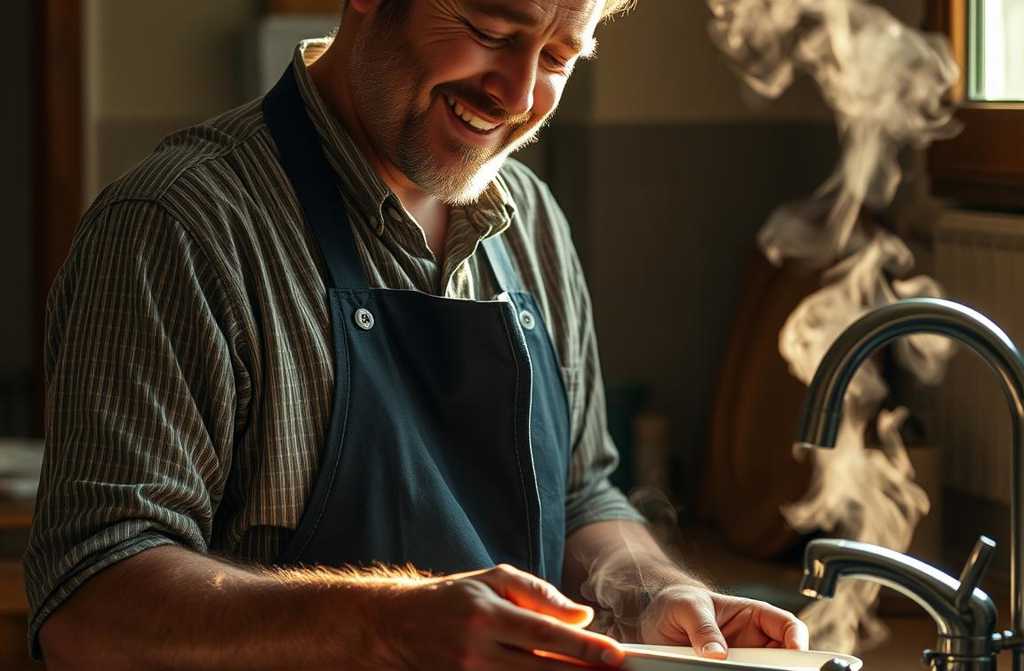 Tadas plovė indus. Trečią dieną kentėjo, bet nei viena lėkštė, nei puodelis nebuvo švarūs. Grįžęs iš darbo, net neatsirengęs, užsidėjo prijuostę ir ėmėsi darbo. Galvojo ir sriubos virėti, bet pamiršęs, koks tikras jos skonis