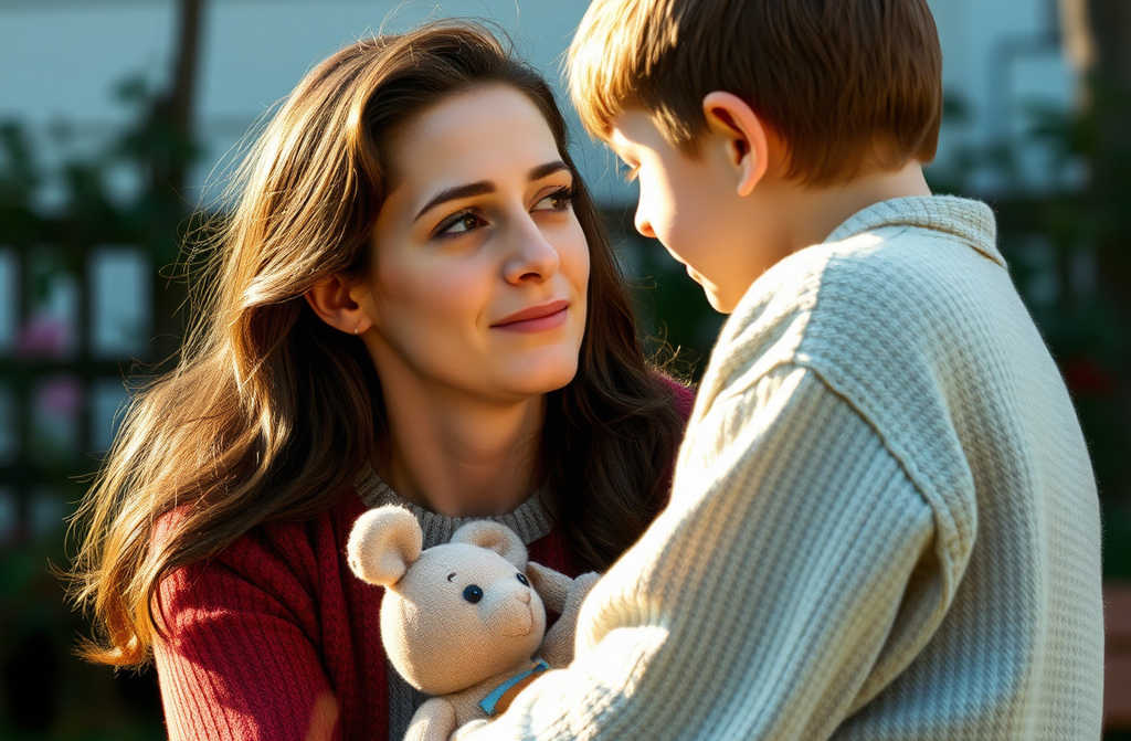 Jis švelniai bučiuoja Viltę į skruostą ir išvengia lipnių sūnaus rankų.