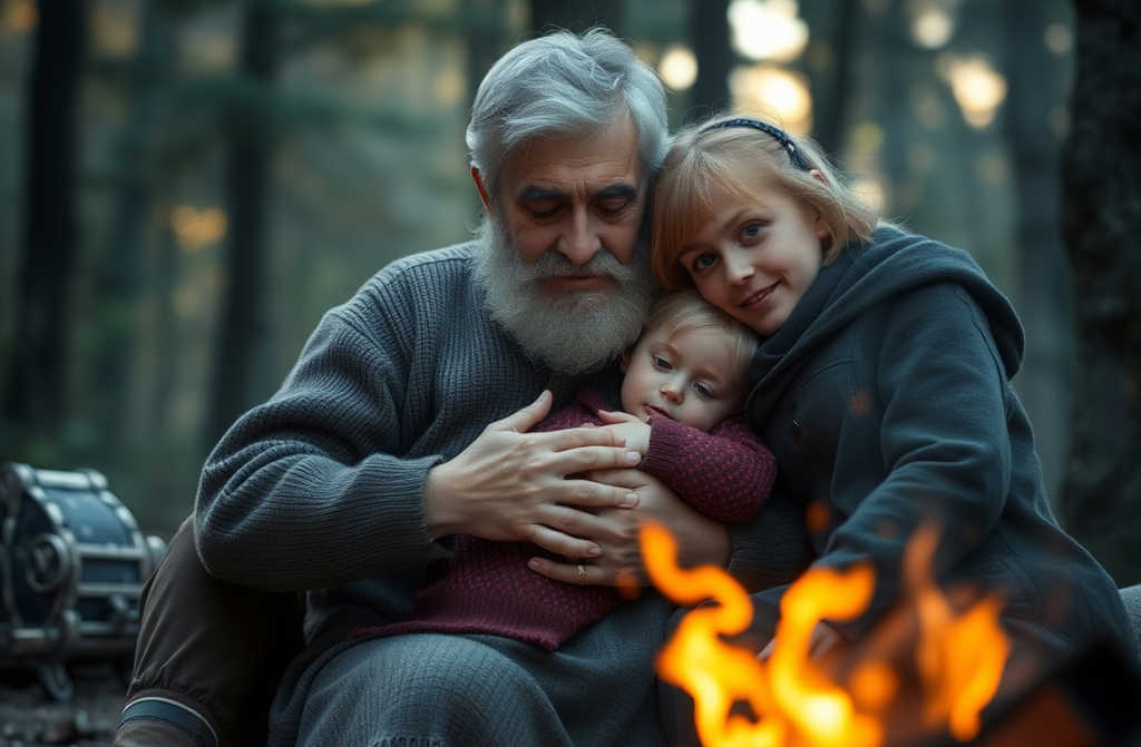 Naktį garsai supažindino su šakėmis, ašaros iškilusios iki veido, bet jis laikėsi šiltai prispaudęs prie senelio, apgaubtas lauko dangčiu.