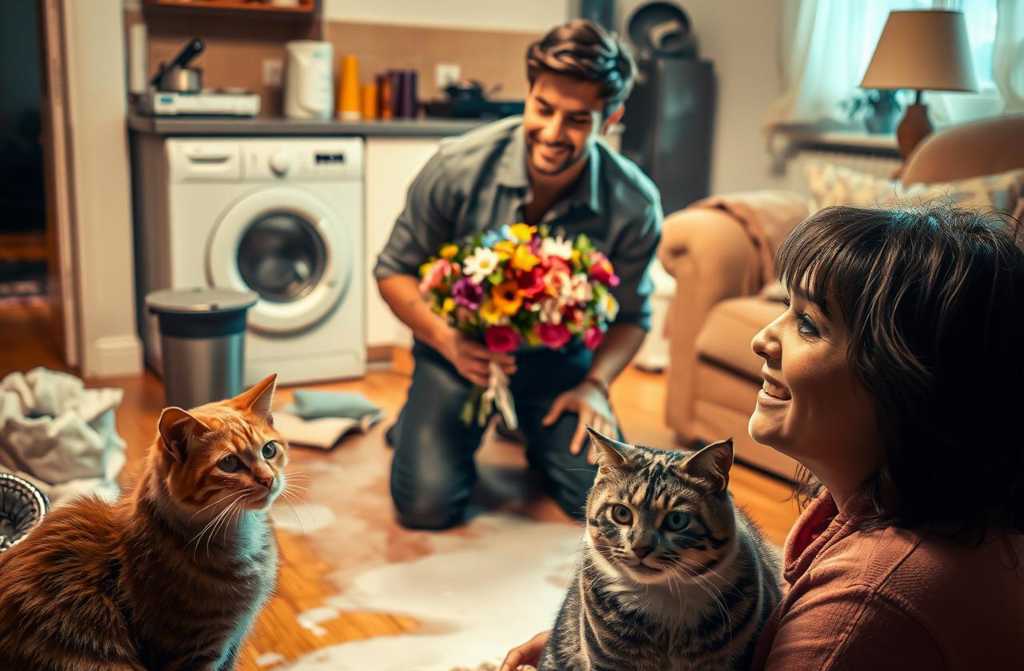 — Skalbinu drabužius, jaučiu — suodžiai. Atidarau orkaitę, o ten mėsa jau anglys. Palašiau aliejaus — užsidegė. Nusideginau antakius. Tada katinas surėko. Bėgu prie skalbimo mašinos, o ji neužsiveria. O katinas už stiklo — akys kaip demono. Ir rėkia! Aš tarp pragaro orkaitėje ir pragaro mašinoje. Paėmiau lazdelę. Išdaužiau. Katinas iššoko, ir prasidėjo…