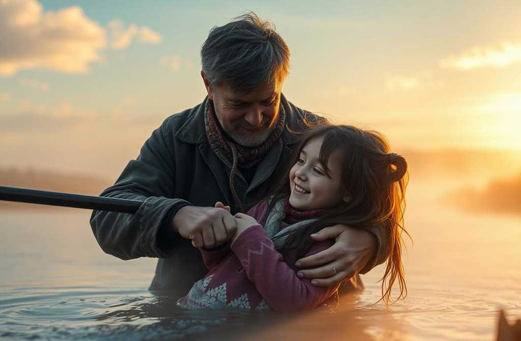 …Victoras išgelbsti mergaitę, atgauna kvėpavimą, ji atsibunda. Jis šokinėja ant kojų, skuba prie jos. Ji atveria akis, žiūJis šypsosi, švelniai suspaudžia jos ranką ir šnabžda: Dabar mes kartu grįšime namo.