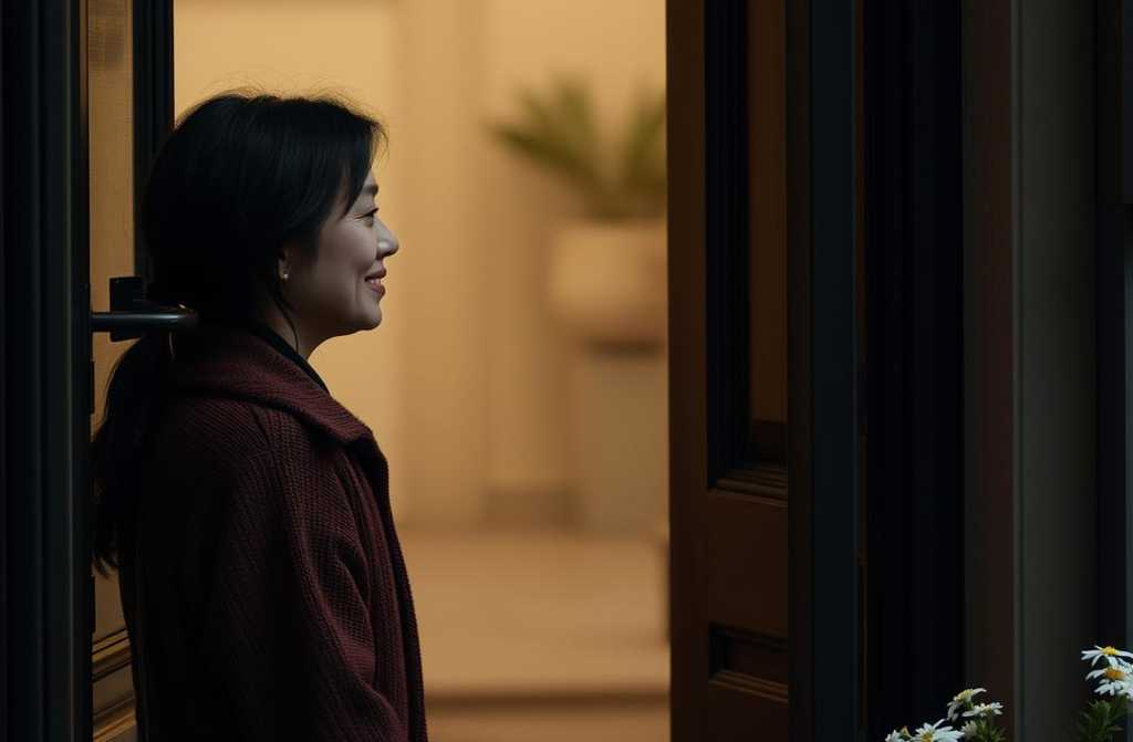 Giedrė buvo viena bute; jos vyras, Tomas, išvyko pas draugą padėti su darželio darbais. Ji grįžo prie durų ir dar kartą pažvelgė pro angą, atidžiau įsižiūrėdama į nepažįstamąją.