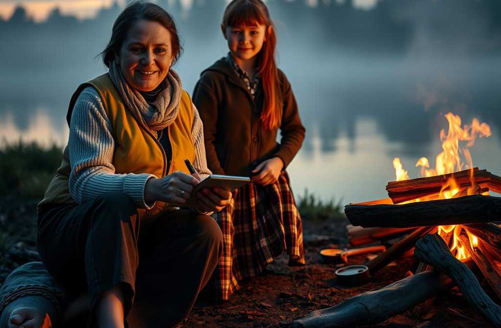 Ugnė tyliai sėdi. Žmonės prie laužo sustoja. Aušra priartėja nuošalyje, švelniai paliečia jos petį: