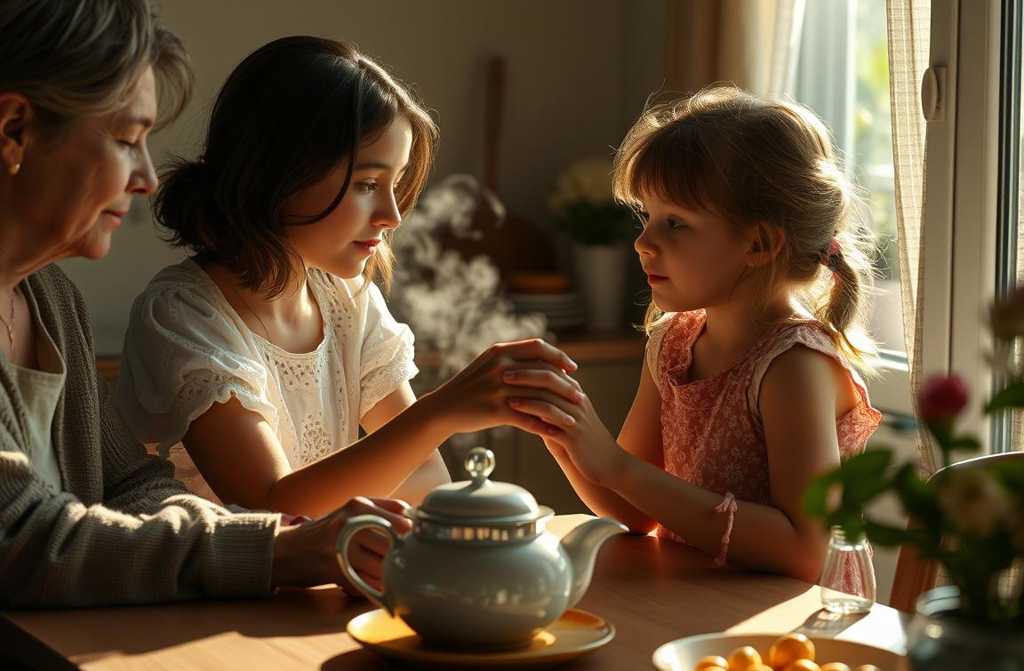 Motiną vis dar skaudėjo skyrybų atgarsiai. Ji griežtai žvilgtelėjo į dukteris, sėdinčias prie apvalaus stalo.