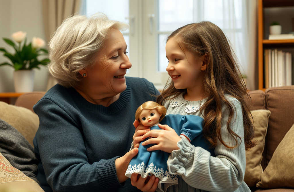 Šiandien nuostabiai nusiteikęs atėjau į mūsų daugiabutį kiemišką namą, kur gyvena mano sūnaus, Marius, šeima. Manęs lėmė širdies džiugesys ateina Agnė Antonova, mano močiutė, ir ji nešioja ypatingą dovaną mylimąją perlių lėlę, kurią vadinsime Natūlė. Lėlės dėžė, pusės metro ilgio, susipynė rožine satine juosta, ant kurios plaukiojo didžiulė gėlė.