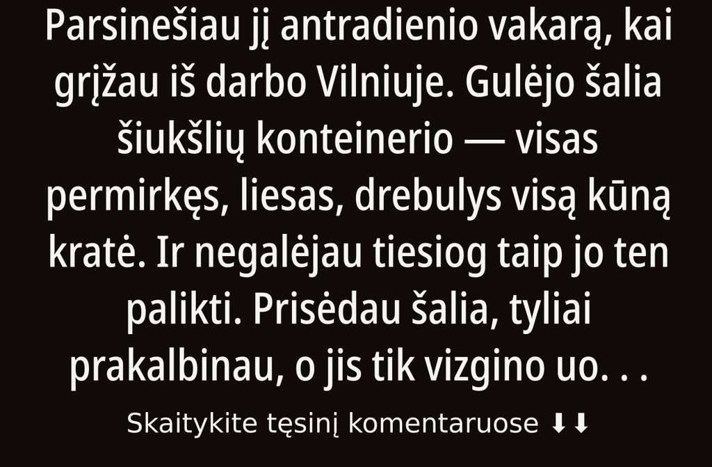 Geriau tūkstantį kartų atlaikyti tuos žvarbius žvilgsnius, negu palikti bejėgį gyvūną mirti gatvėje. Tai buvo pamoka atjauta visada svarbesnė už tuščią, šaltą tvarką.