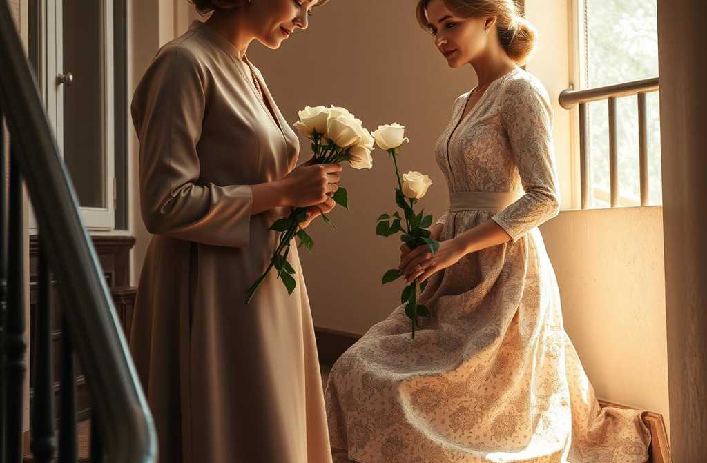 Pirmą kartą Marija pamatė naująją kaimynę atsitiktinai. Įžiūrėjo pro durų akį, išgirdusi balsus laiptinėje, ir sustingo nuo staigmenos. Priešingo buto slenksčio stovėjo aukšta moteris, dėvinti elegantišką smėlio spalvos paltą. Plaukus susukus į tvarkingą kepurę, rankose laikė puokštę baltų rožių.