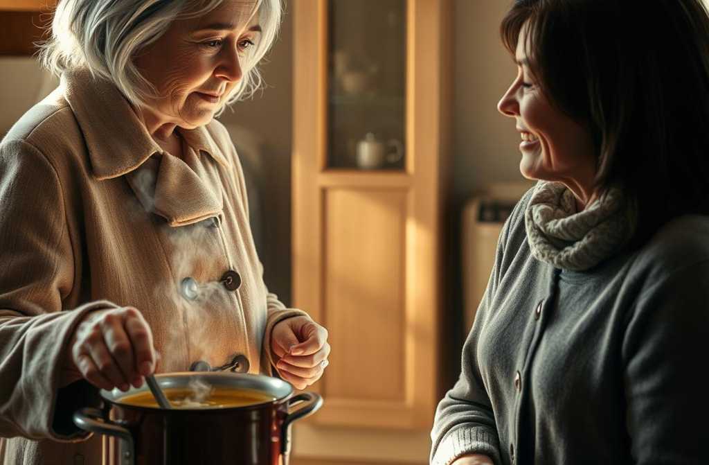 “Kur čeburekai? Kur sultinys? Jūs nemaitinat mano sūnaus tinkamai! Anksčiau jis buvo prižiūrėtas, sotus. O dabar? Grįžta išvargęs į šaltą namą. Kitą kartą noriu, kad šitas šaldytuvas būtų pilnas naminių patiekalų. O šitas netvarka… Čia vos kvėpuoti įmanoma!”