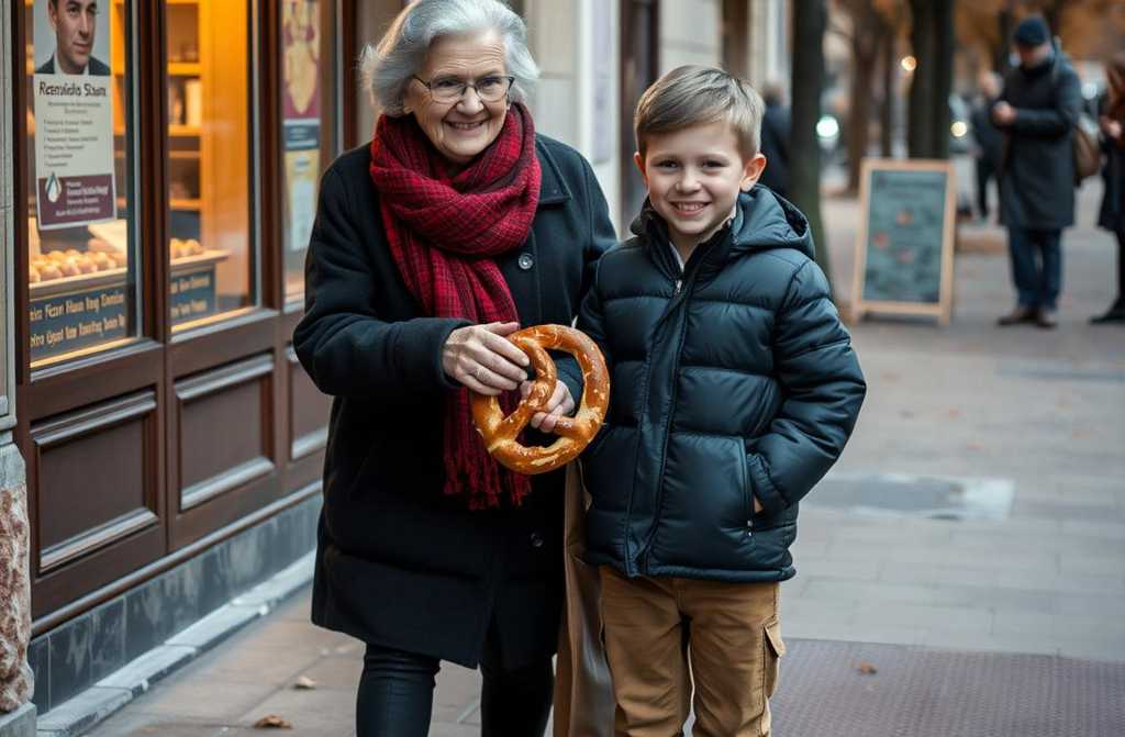Poniau, prašau, nebesikreipkite į mane… bet ar galėtumėte man duoti vieną iš tų gražių pretzelų? Praradau piniginę, o sūnuliui alkaninga. Pašakysiu sumokėti, kai ją rasime… arba kai gausiu pensiją…